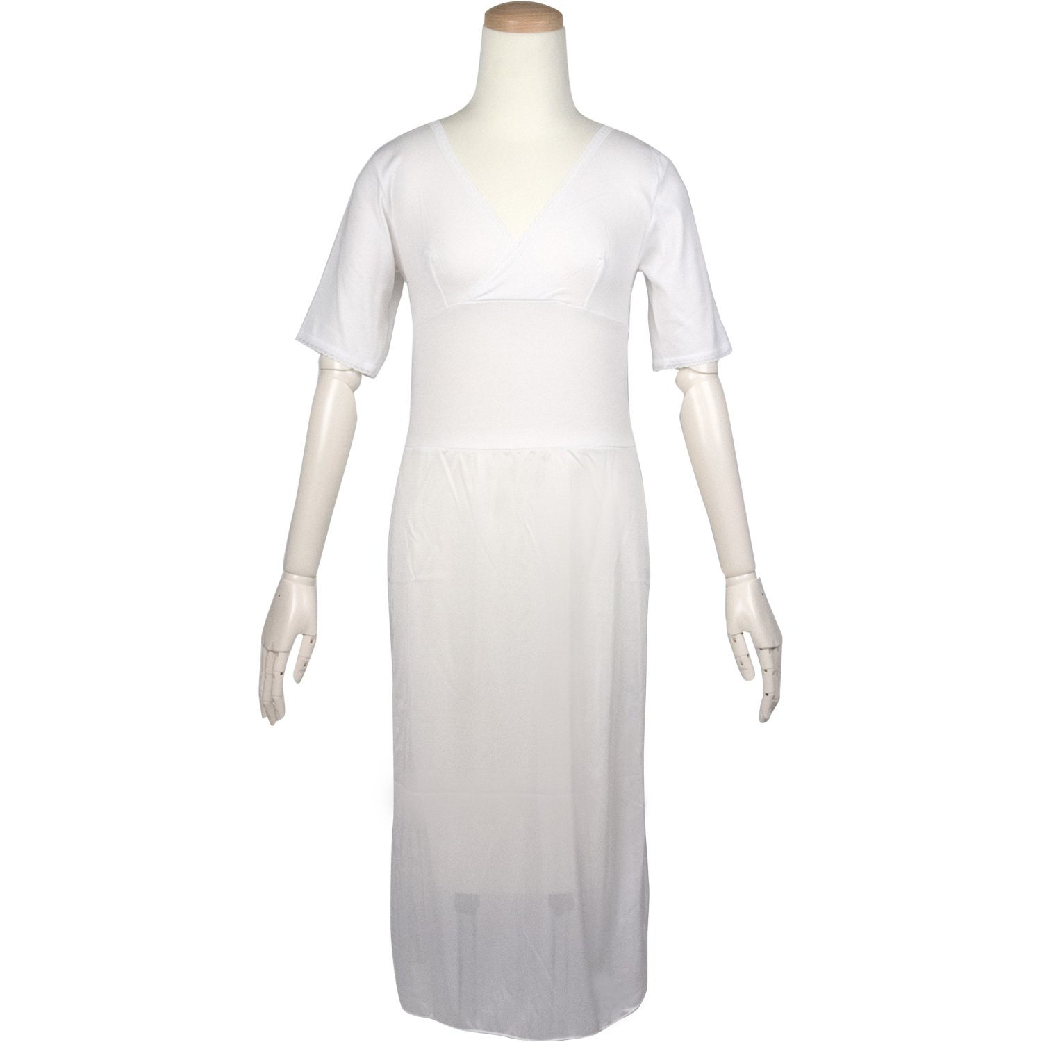 準備ができたら、通常のインナー(ショーツとブラジャー)の上から肌着(肌襦袢)を着用します。肌着にはさまざまな形がありますが、おすすめはワンピースタイプ。洋服のように被るだけなのでとっても楽です。