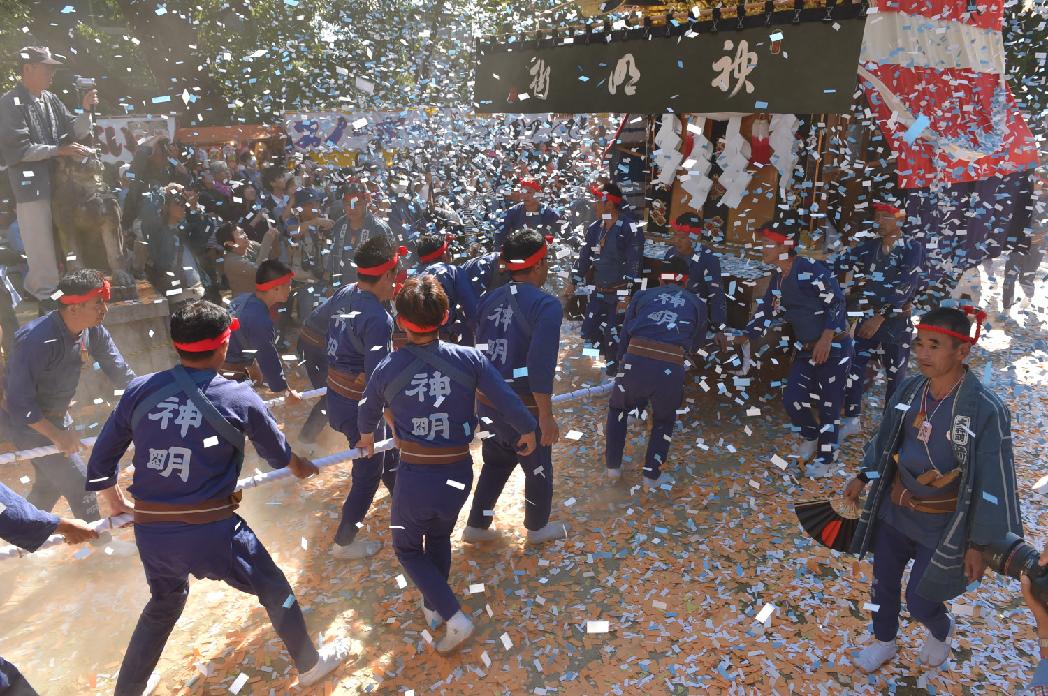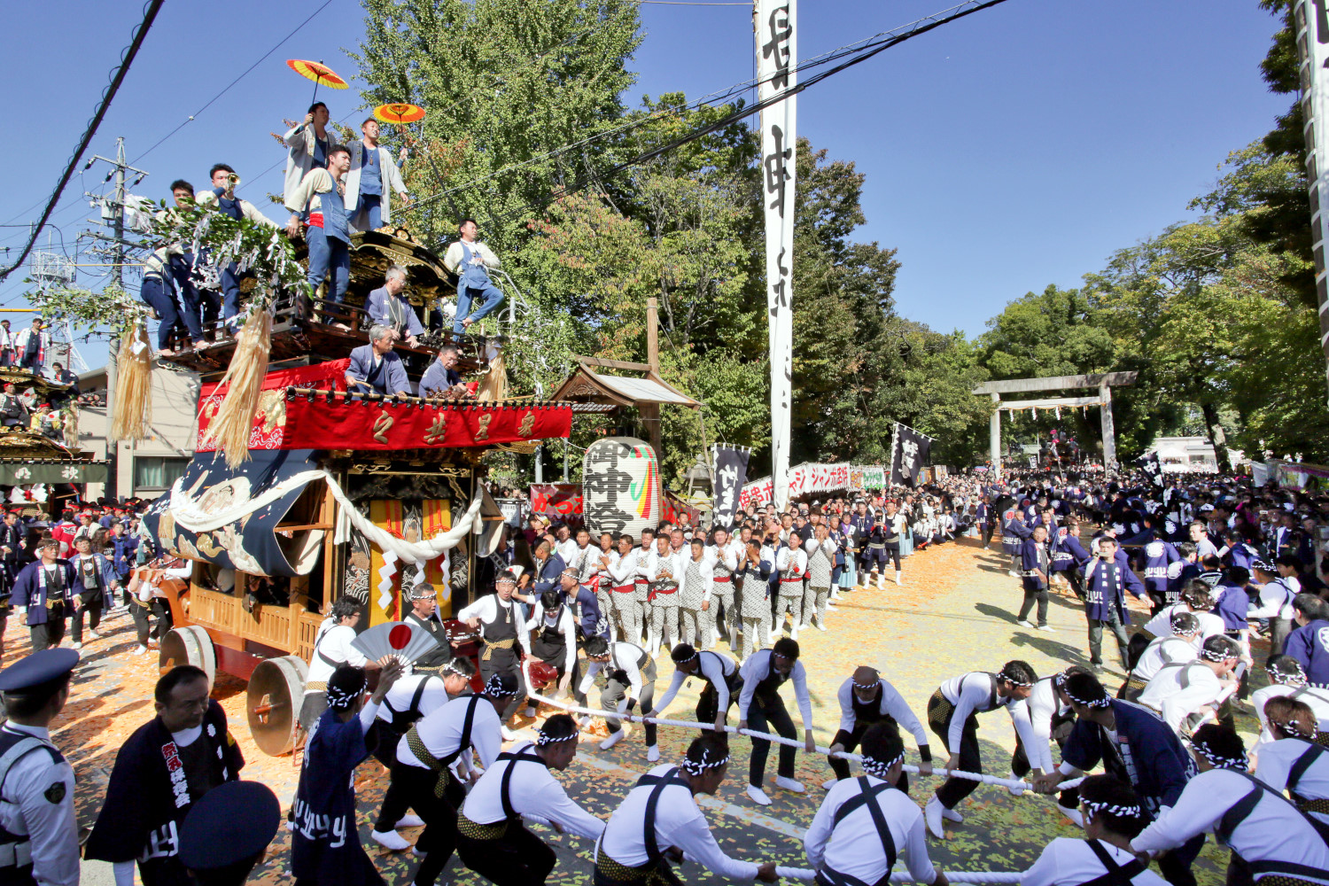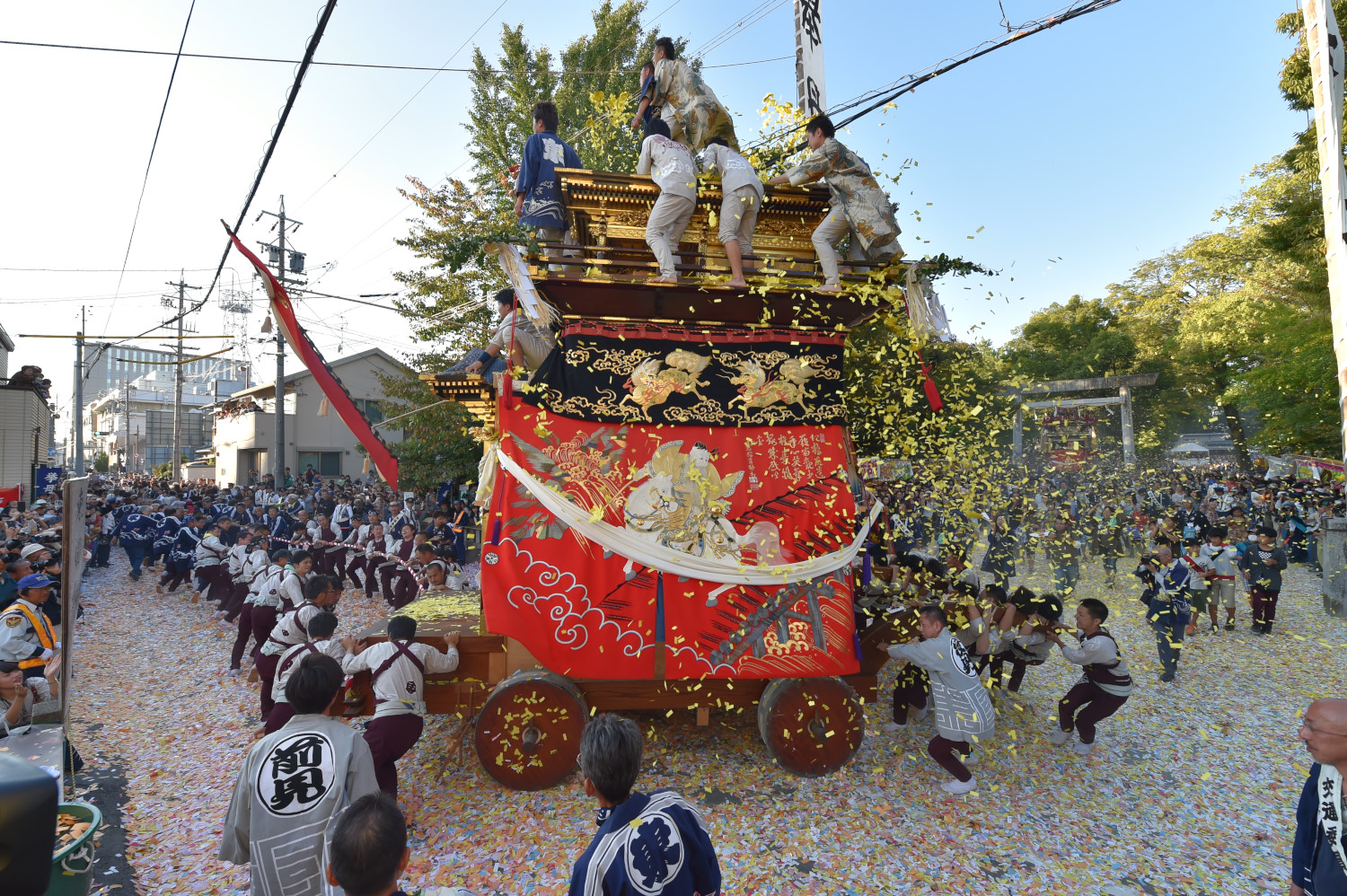一番の見どころは、喜多町、旧東町、神明町、西町、中町、旧南町、竹生町、旧本町の8つの町が持つ「八両の山車」。大量の紙吹雪が舞う中、掛け声と共に八両の山車が練り歩く様は圧巻です。八両の山車は愛知県と豊田市の有形民俗文化財に指定されています。