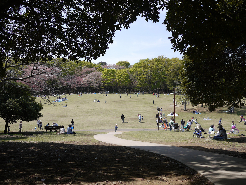 日本初の洋式競馬場跡地に整備された「根岸森林公園」は、なだらなか地形の芝生がとても綺麗です。
