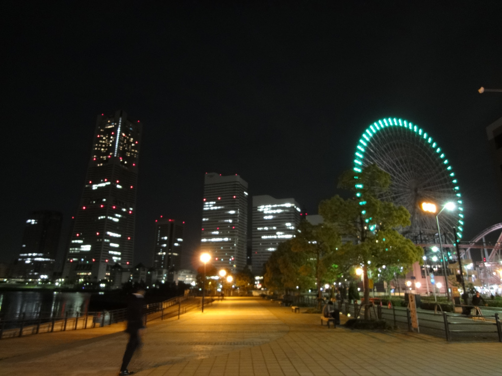 夜はみなとみらいの夜景を見ることができます。外灯もありますので夜のお散歩にも使えそうです。
