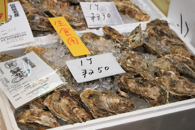 黒門市場の名物といえば、ほんまもんもうならせる食材がずらりと並んでいること!特に海鮮系の食べ物は食べ歩きにはぴったりです。贅沢な海鮮を食べ歩きしながら、ぶらぶらと黒門市場を歩くのはとてもいい気分が味わえちゃいます!