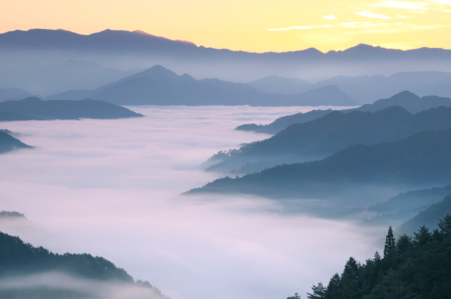 近畿地方最高峰の山としてしられる八経ヶ岳。初夏の季節でも空気はひんやりと涼しく、登山途中には、国指定天然記念物のオオヤマレンゲを見ることができます。道中の弥山小屋で泊まり、翌早朝に、運が良ければ眼下に広がる雲海を眺めることができるかも。標高がある山なので急な天候の変化には注意しましょう。