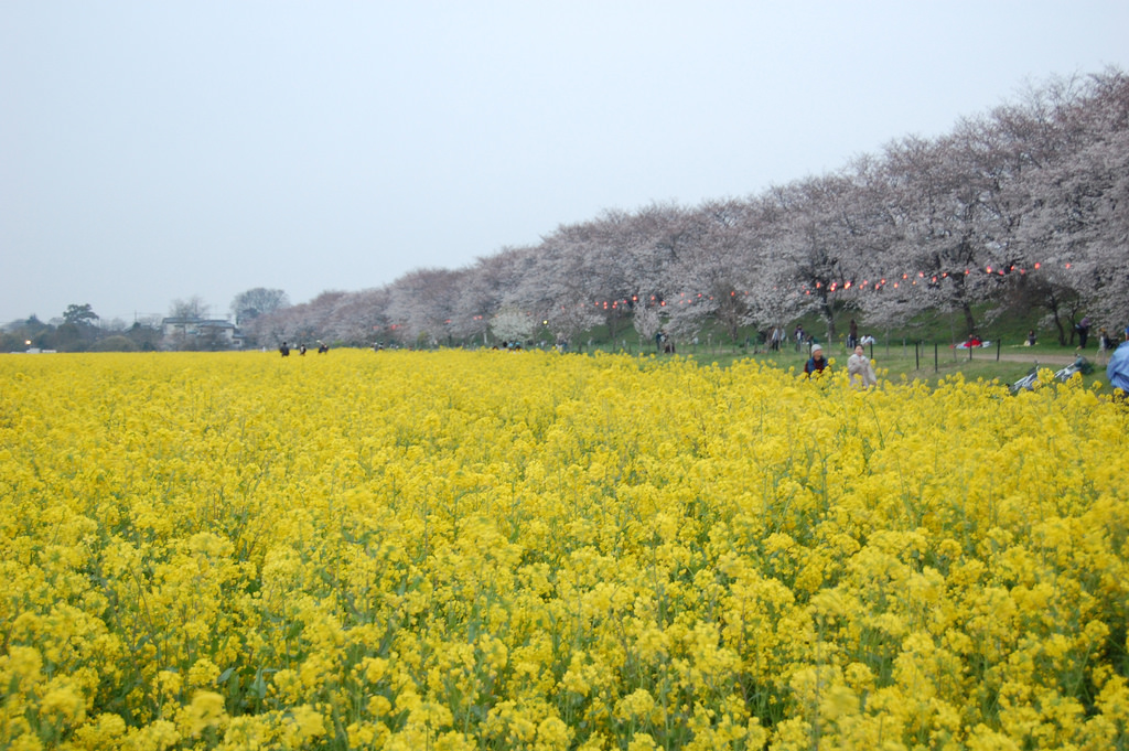 桜の名所として知られる埼玉県・幸手市の「権現堂鼓」。全国的にも超有名な桜スポットで、テレビの中継やドラマの撮影などにも使われます。利根川水系・中川の堤防約1km以上にわたって1000本以上の桜並木が続き、堤下には一面に菜の花が咲くため、春にはピンクと黄色のコントラストが圧巻です。その歴史は古く、安土桃山時代の天正4年(1576年)に堤が築かれたと言われています。桜は大正5年に植えられました。花見の時期に行われる恒例の「桜まつり」は大正14年頃から始まっていたようです。