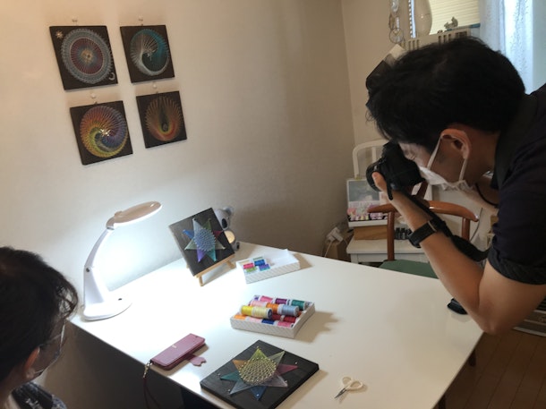 本日は糸掛け曼荼羅WSに取材の方がきてくださいました。