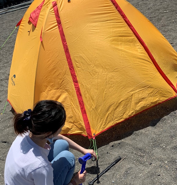 防砂のためのタープで大事にはいたりませんでしたが、タープと風の相性が良くないことを
