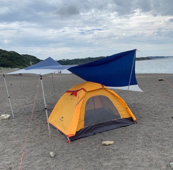 ゲストさんはタープ立ては少しだけ苦労しましたが、理屈も理解いただいたようで無事完成です。