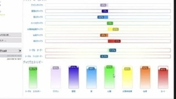 ひかりさんのオーラのバランスです。最初に私が計測した時点で全体の数値も高く、オーラのバランスも良くて言うことなしの状態でした☆
