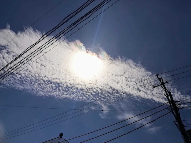 待ち合わせ場所のバス停で空を見上げたら、こんな写真が撮れましたよ!