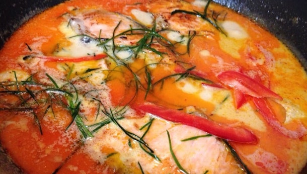 3) チューシー プラーサーモン(Main Dish: サーモンのレッドカレーソース添え Salmon with Red Curry Sauce)