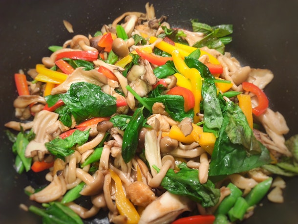 きのこ3種類たっぷり使って、うまみがきいた美味しいガパオになります!