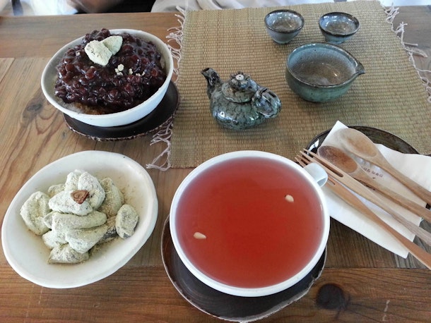伝統茶屋さんにいって本場の五味子茶とお菓子も