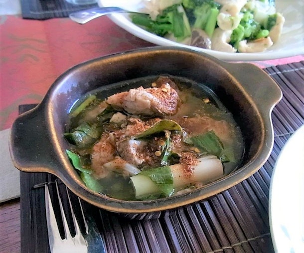 まず、お勧めは 「トム・セープ」という、煮込みトムヤムスープです。