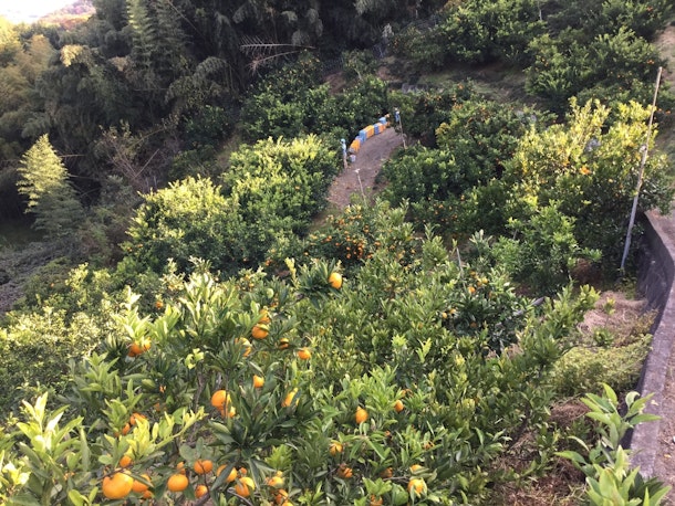 天候も良さそうですので、山に15分ぐらい登りながら海や自然の生物や地層など見たりフルーツだけでなく遊びがある体験になっています。