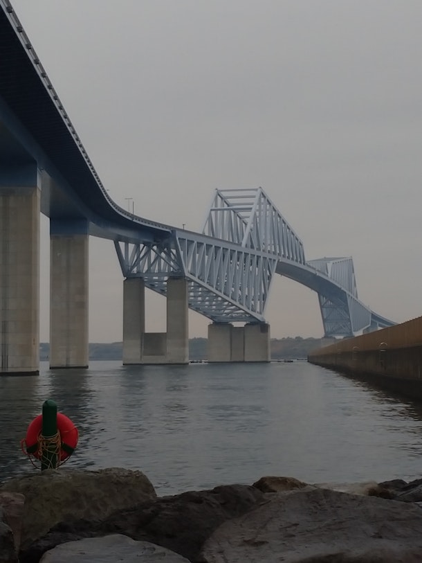 江東区若洲に架かる橋が、東京ゲートブリッジ(片方は江東区海の森、大田区令和島方面に繋がっている)になっていて、最寄りの鉄道駅(新木場駅)からは、やや遠い場所に存在する。