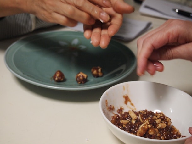 「金の袋」という意味の 巾着の形をした かわいい春巻きを作ります。