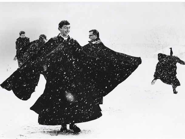 そのなかで、黒い、イッセイ・ミヤケふうのゆるやかな衣服をつけた男が数人、氷の上でスケートをしている