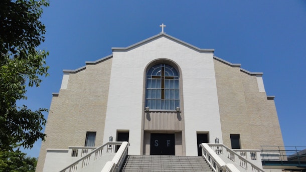 坂の上に建つカトリック田園調布教会は、