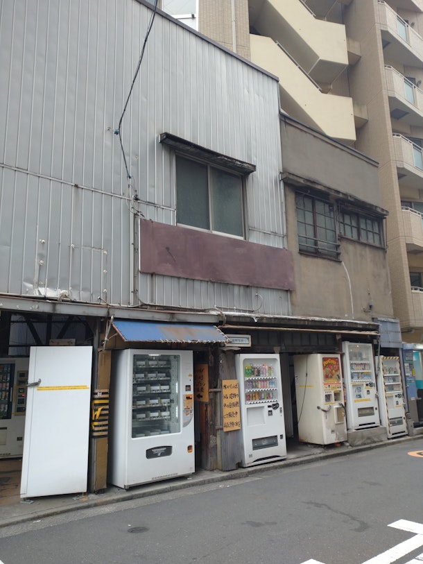 神田駅へ向かう途中の路地裏にその自動販売機は存在し、外観からして昭和レトロ感満載の造りになっている。