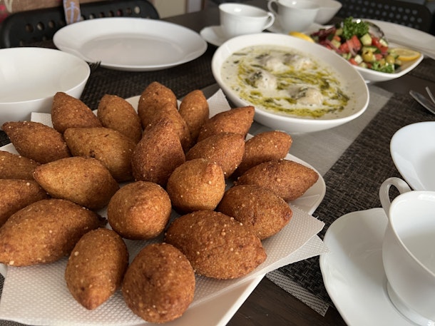 無数にバリエーションがあるのですが、一番人気なのが、ブルグルとひき肉のレモンの型ケッベ(揚げケッベ)、そしてボールの型(ヨーグルスープで茹でたケッベ)