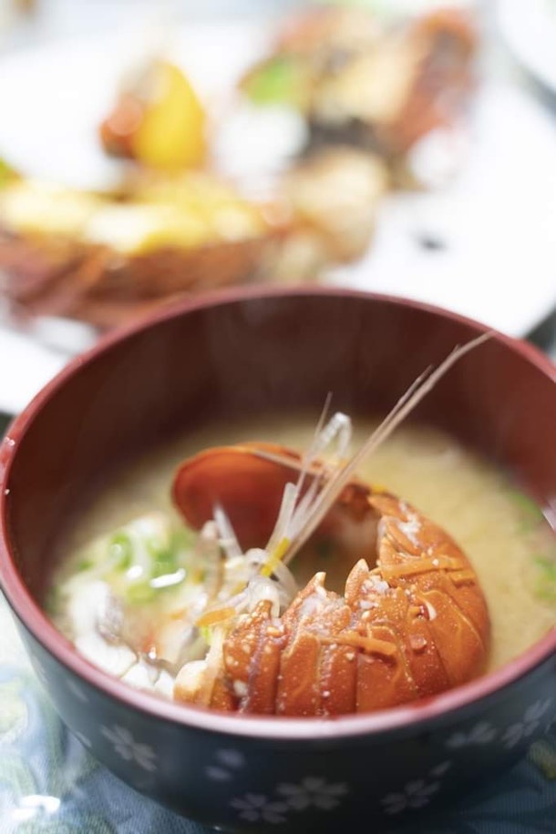味噌汁の出汁にイセエビ殻