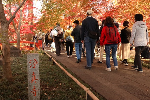 九品仏浄真寺の紅葉は今が1番良い時期です。土日はこんな感じです。行くなら平日です。ましゃえもんの九品仏浄真寺散策コース、予約登録をお待ちしております。