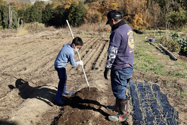 ホストさんからアドバイスをもらい、畑を耕していきます。