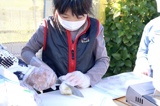 子どもたちも自分で包丁を持ち、気を付けながらカットしていきます。