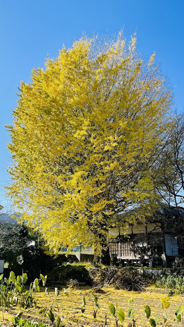 近くのお寺の前に、大銀杏がありました。葉が風で運ばれた姿は圧巻でした!