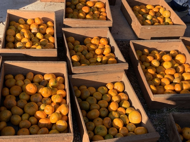 木箱の中みかんは木になるみかんとまた別の風情を感じます。