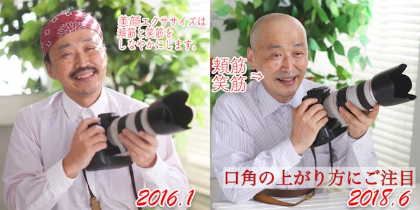 の頃、独自の美顔エクササイズを編み出しまして、撮影するお客さまの表情が簡単に変わることに気付いていたので、自ら実践したのが、こちら。