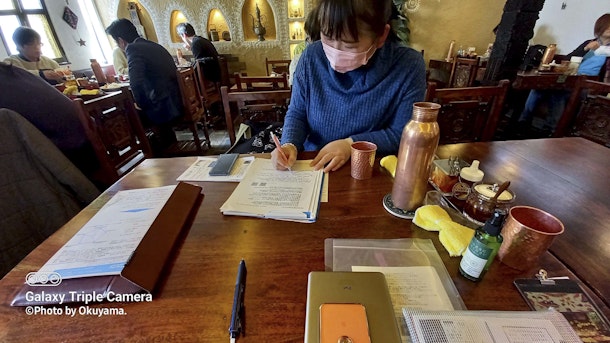 参拝を終え、メインの「笑顔のワークショップ」は、美味しいインド料理店「シタール」さんでランチをいただきながら行いました。