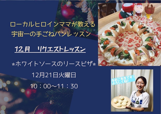 クリスマスリースの形をしたピザのレッスンを12月21日火曜日10時〜オンラインで開催します♪