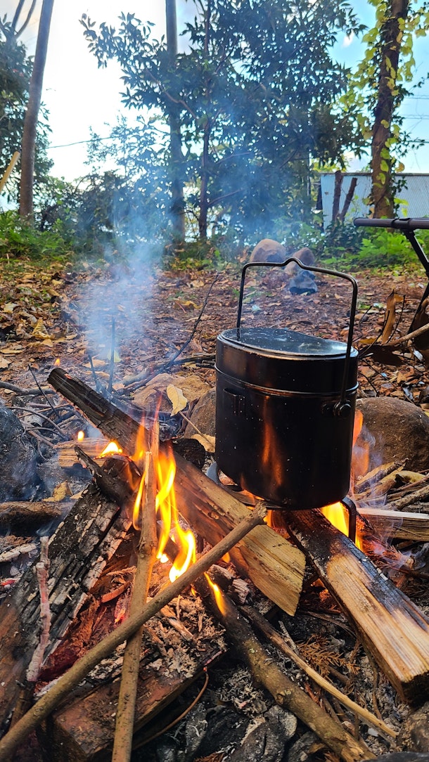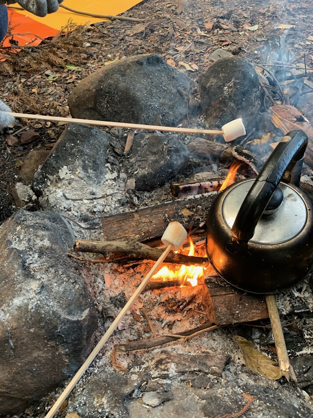 沼津駅周辺を堪能しすぎたので急足で焚き火の場所に移動。ここはThe Old Busのオーナーが運営する小さなキャンプ場。海から道を挟んですぐの茂みの中にあるので冬でもあったかいんですよね。ワイルド焚き火体験なので枝を集めて薪を割って着火していく!ホストまっつんの知恵が炸裂しはじめます。着火のあとは焼きマシュマロや飯ごう炊飯、ゆず湯など冬ならではの暖かコンテンツで思う存分楽しみました。(まっつん、沢山準備してくれてありがとう)詳しくはレビューを読んでください。