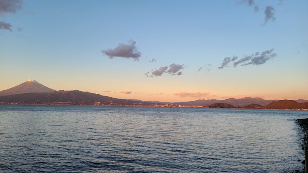 まだ時間があったので海の方まで散策。この日はお天気最高な週末だったので駐車場待ちの車がずらっ〜〜〜〜〜と。人気のランチ処には行列ができ始めていました。沼津の海は日本画みたいで新鮮でした。富嶽百景の雰囲気に見えたのは思い込みだけではないはず。ここでホストとの待ち合わせ時間になったので午前の部は終了〜。ここまでだけでも既に大満足。。。
