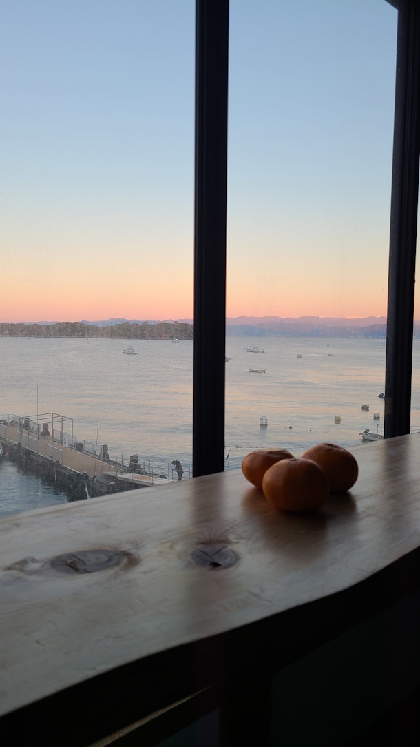 このゲストハウスは目の前が海なので、夜明けとともにイカ釣り漁船が戻ってくる様子や海が明るくなっていく様をお部屋から眺められて最高でした。できたばかりなのでお部屋もシャワーやトイレもピカピカ。