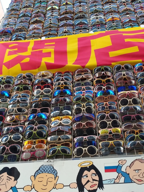 外観には、びっしりと派手な眼鏡の大群が・・・。