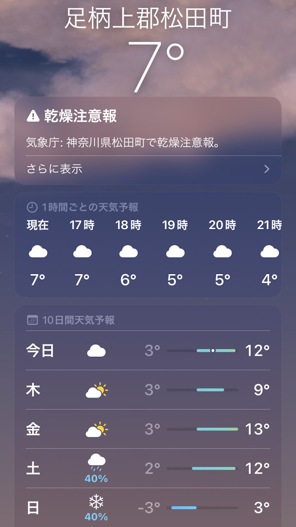 年内最後の体験は雪マークで最低気温-3度、最高気温3度ですって。。