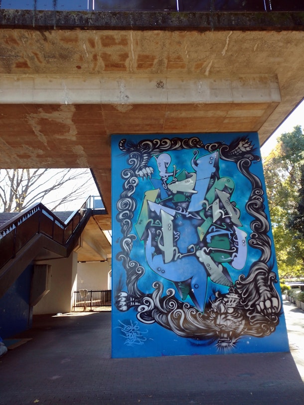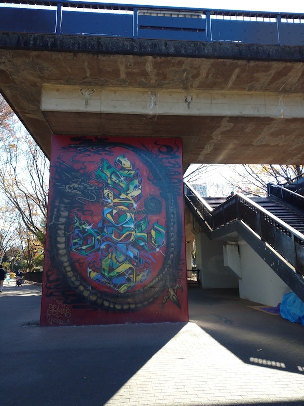 代々木公園の北側も渋谷区代々木神園町になる。芸術的な壁その①。