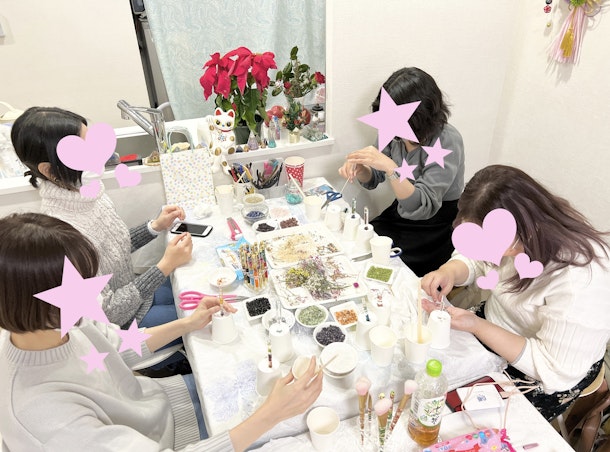 天然石や着色したお花を入れられました