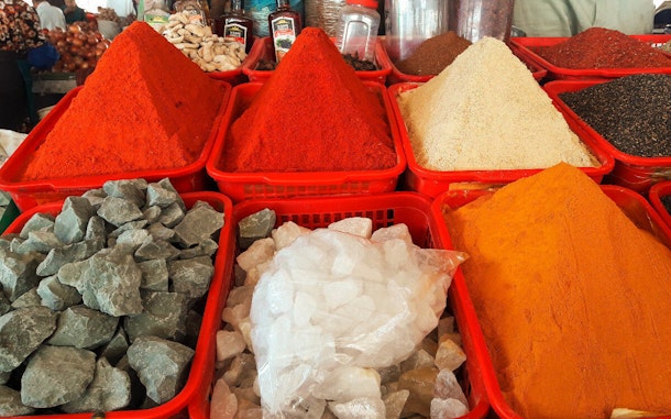 スパイスの中でスパイスではない商品もあります。それはなんと食べられる石です。妊婦さんが食べる粘土、チョークとカルシウムが売られています。