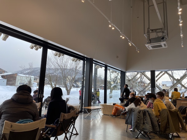 スキーを昼で上がるとこんな感じでお茶してる人もいますね。スタバとスノーパークスのコラボ店。ちなみに庭で遊べるので子供にはいいかも!、