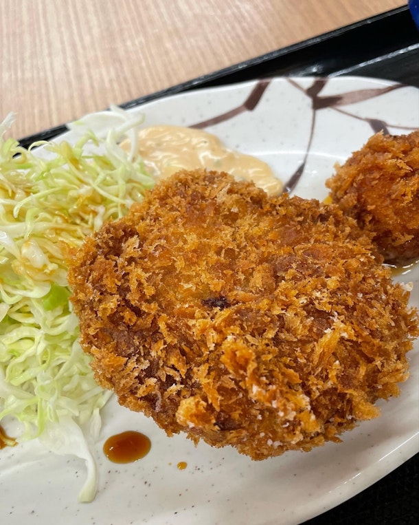 見た目はメンチのでかさがひときわ目立ってしまうのでこのトッピングの組み合わせはいまいちかな。