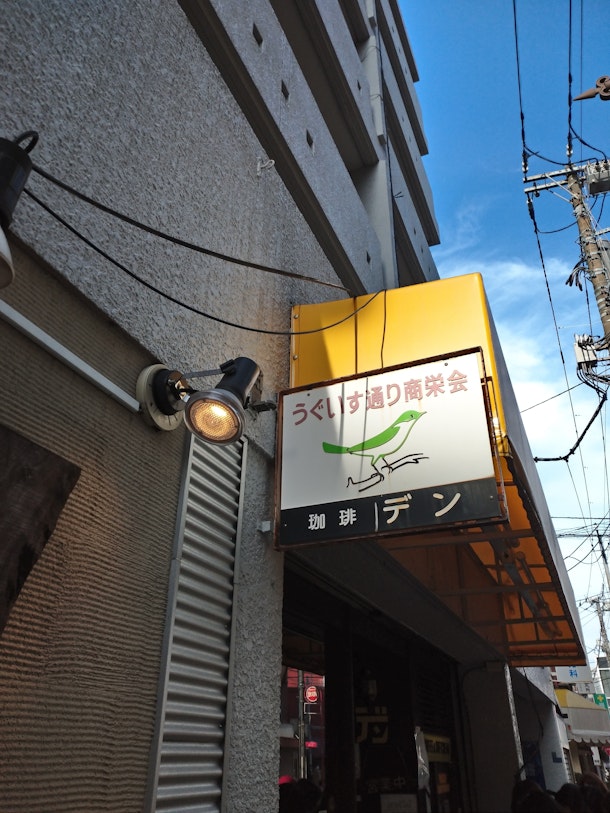 商栄会の看板がうぐいす・・・。お洒落過ぎる。