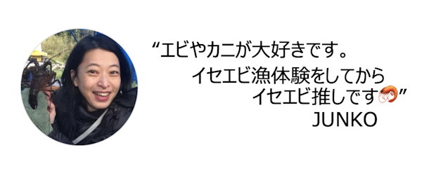 はっきり書いていらっしゃいますね!”エビ好き集まれ!”と。これは盛り上がりますよ。好きな食べ物が一緒って初対面でも必ず意気投合しますね!楽しそうです。JUNKOさんはコロナの影響で一時体験開催できなかった期間に日本さかな検定(ととけん)準一級を取得されたとのことで、魚の知識も豊富でいらっしゃいます。凄い!是非JUNKOさんと一緒にエビを剥き剥きして美味しく料理したいです。