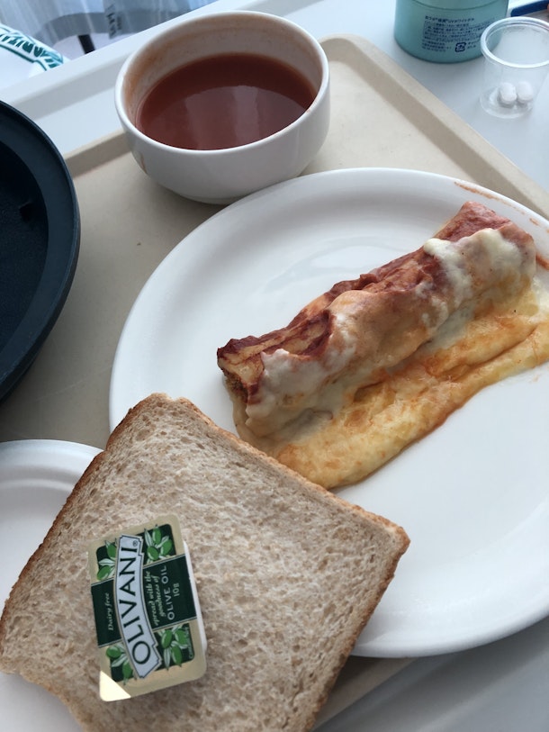 固形物は食べれない、って言ってんのにラザニアとパン(爆)