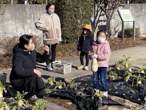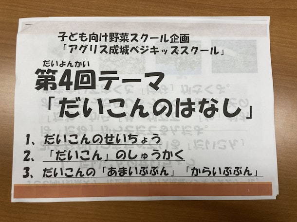 これまでに、サツマイモ編、葉物野菜編などの体験を開催しており、今回は大根編の体験となります。