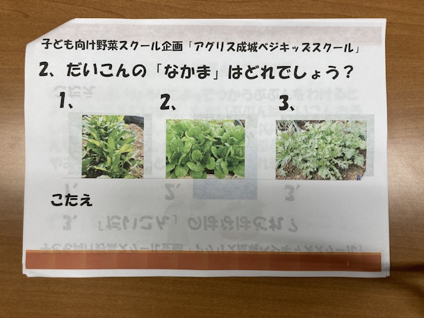 佐々木店長が配ってくださった資料のなかには、クイズや野菜の豆知識がたっぷり!