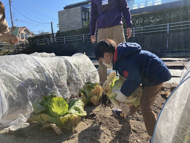 見るからに重そうな白菜でしたが、こどもたちはみんな上手に収穫できました!