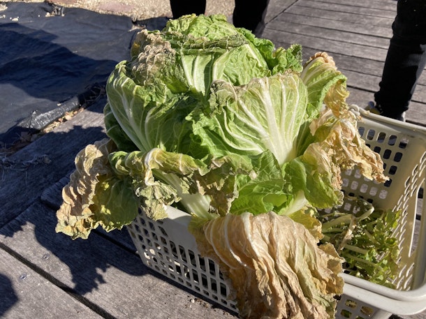 「今日は白菜も収穫できそうなので、白菜も採りましょう」