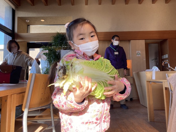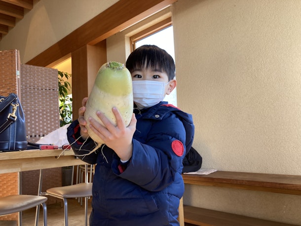 皆さんには、大きな大根と白菜をお持ち帰りいただきました。